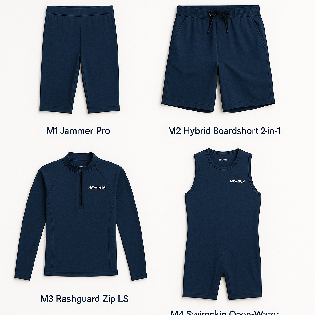Points clés : anti-UV (UPF 50+), cordon de serrage, doublure douce, résistance au chlore, tissus qui ne se déforment pas, rashguards assortis.
