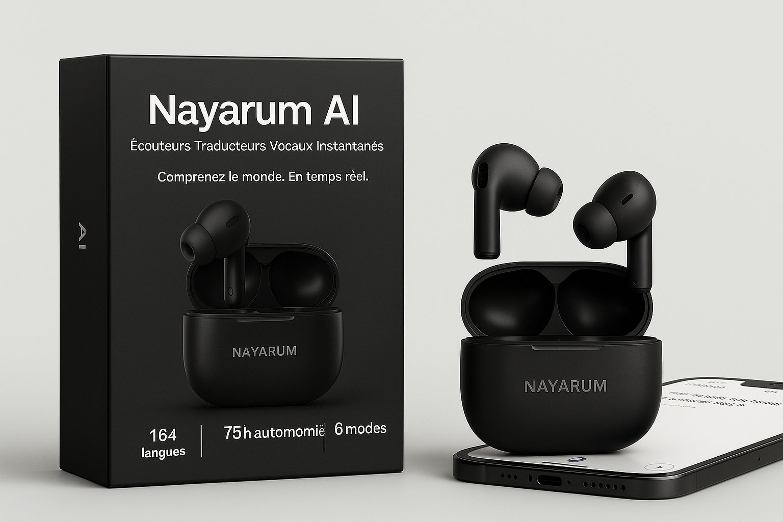 Les Nayarum Translate sont des écouteurs nouvelle génération, capables de traduire instantanément plus de 100 langues. Grâce à l’intelligence artificielle intégrée et une connexion stable Bluetooth, ils vous permettent de communiquer sans barrières, tout en profitant d’un son HD pour votre musique et vos appels. Leur autonomie totale de 75h (boîtier inclus) en fait un compagnon indispensable pour les voyages, les conférences et le quotidien.
