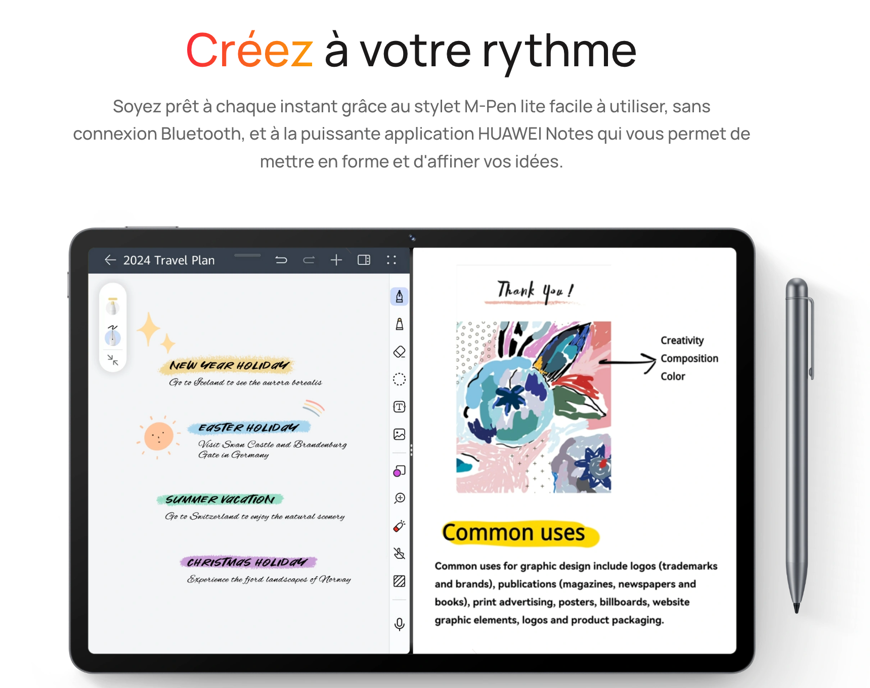 Châssis métallique de qualité supérieure | Écran HUAWEI Fullview Eye Comfort 11" Super batterie 7 700 mAh + 22,5 W.